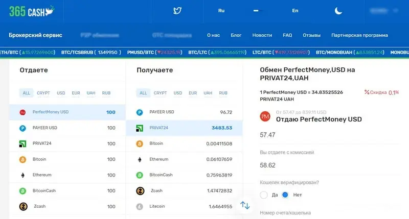 365Cash – это быстрый и надежный онлайн-обменник криптовалют и биткойнов, который стабильно работает в Украине с 2015 года и пользуется спросом.