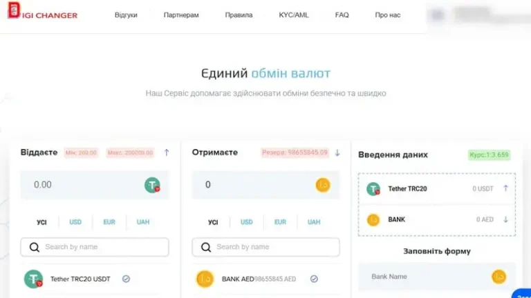 2. Digichanger. Digichanger – выгодный и быстрый в работе автоматический криптообменник, который работает с картами многих украинских банков, криптовалютой и международными платежными системами.