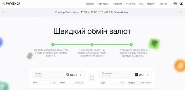 4. PAYEX24. PAYEX24 – быстрый обменник электронных валют и криптовалюты, предоставляющий услуги по покупке и продаже криптовалюты за наличные, через этот обменник можно проводить безналичные расчеты через SWIFT/SEPA, отправлять деньги практически в любую точку мира, включая Украину, а также оплачивать аукционы (Copart, IAAI и другие).