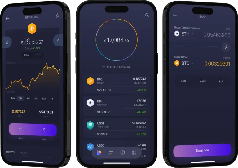 Наличие функции обмена и интуитивно понятный интерфейс криптокошелька